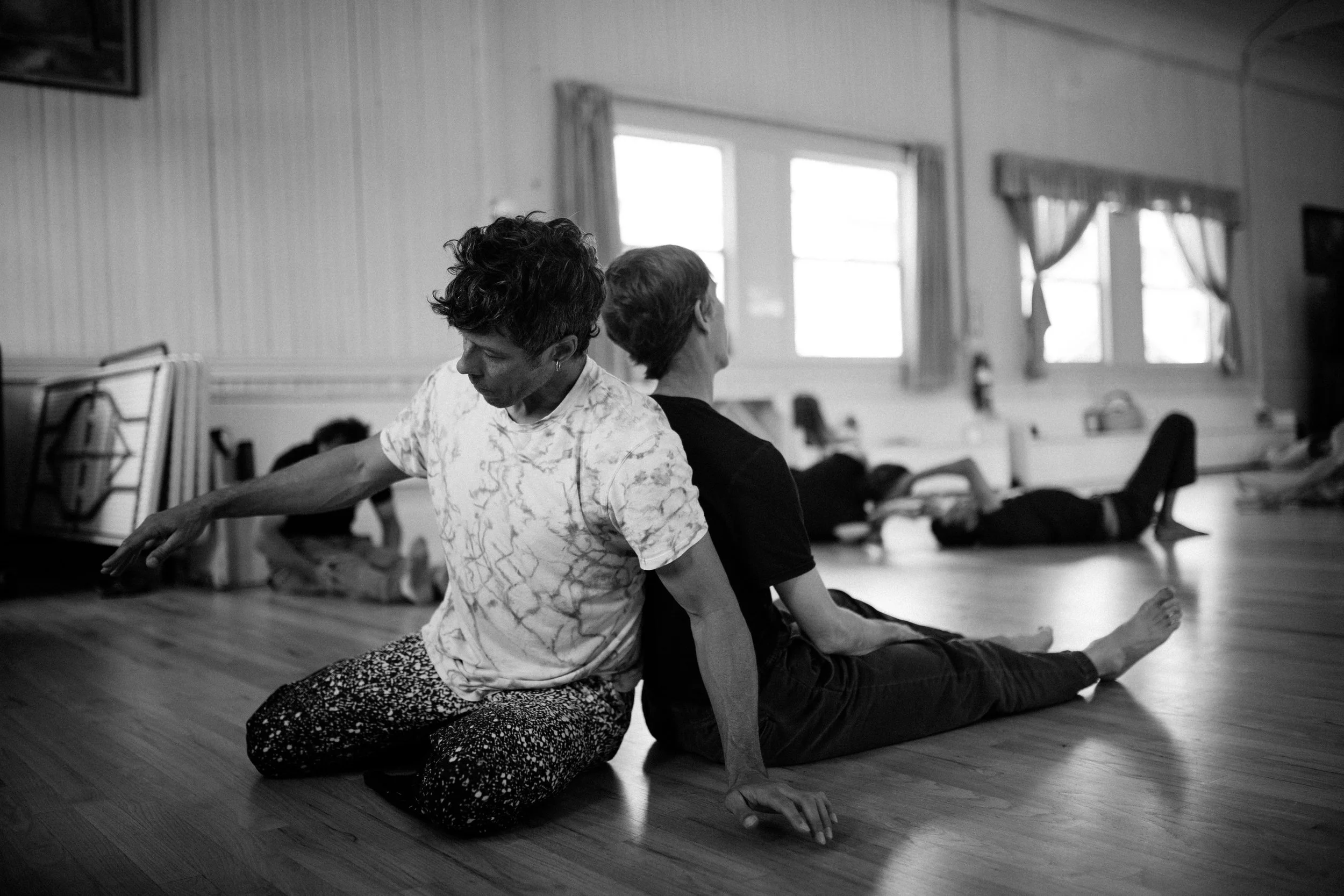 Practiced within groups of curious individuals, Contact Improvisation (CI) is a unique partner dance form in which shared points of physical contact provide the starting place for interactive movement improvisation. This dance practice explores the skills of falling, rolling, counterbalance, sharing weight, tuning into subtle sensation, and being responsive to partners and surroundings. Typically practiced without music, CI provides a unique space for connection to self and others.